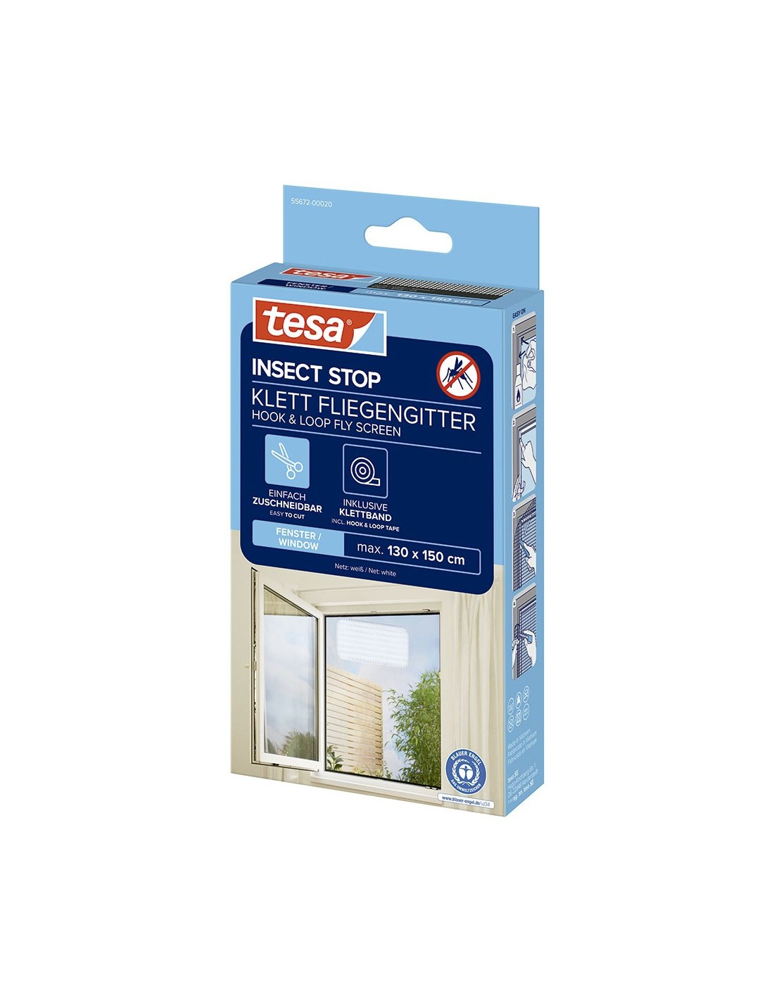 Malla mosquitera para ventana con fijación quita y pon. contiene: malla mosquitera blanca de 130 x 150 cm y cinta de gancho autoadhesivo de 5,60 m
