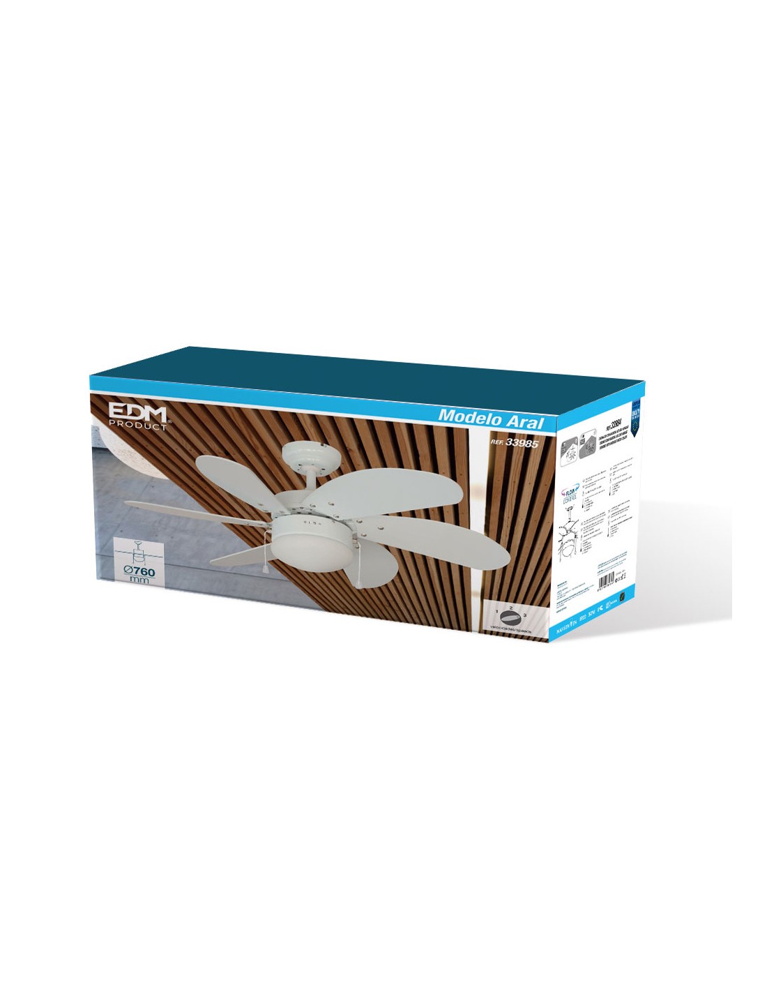 Ventilador de techo modelo aral. color blanco. potencia: 50 w aspas: ø76cm