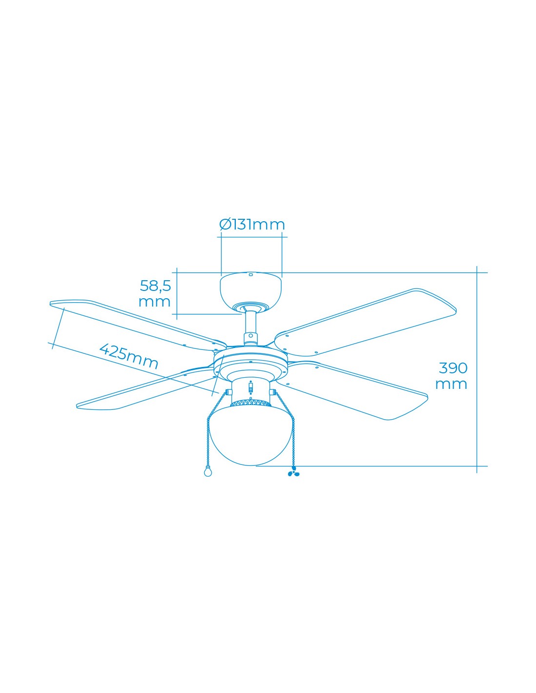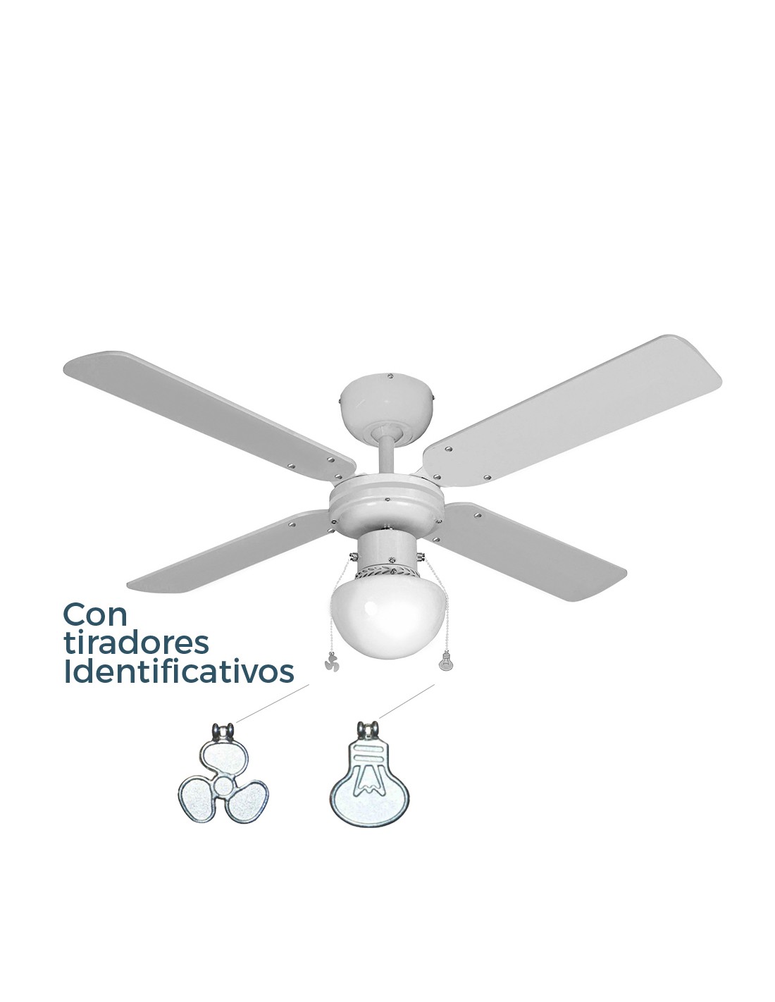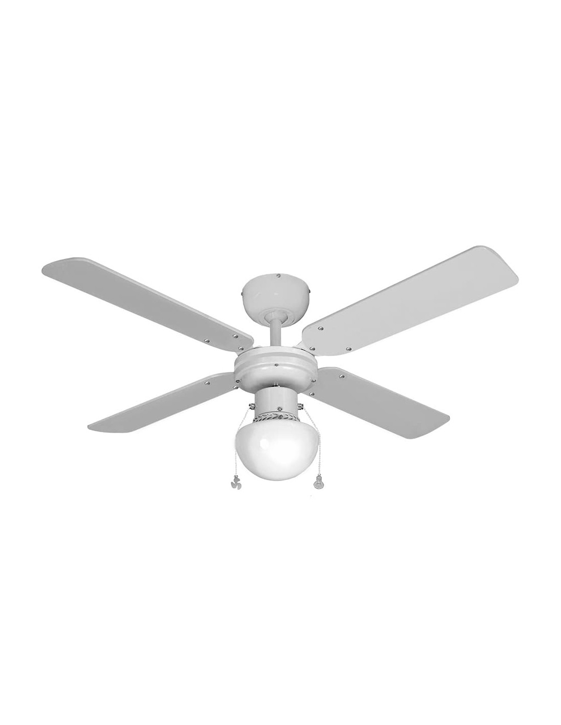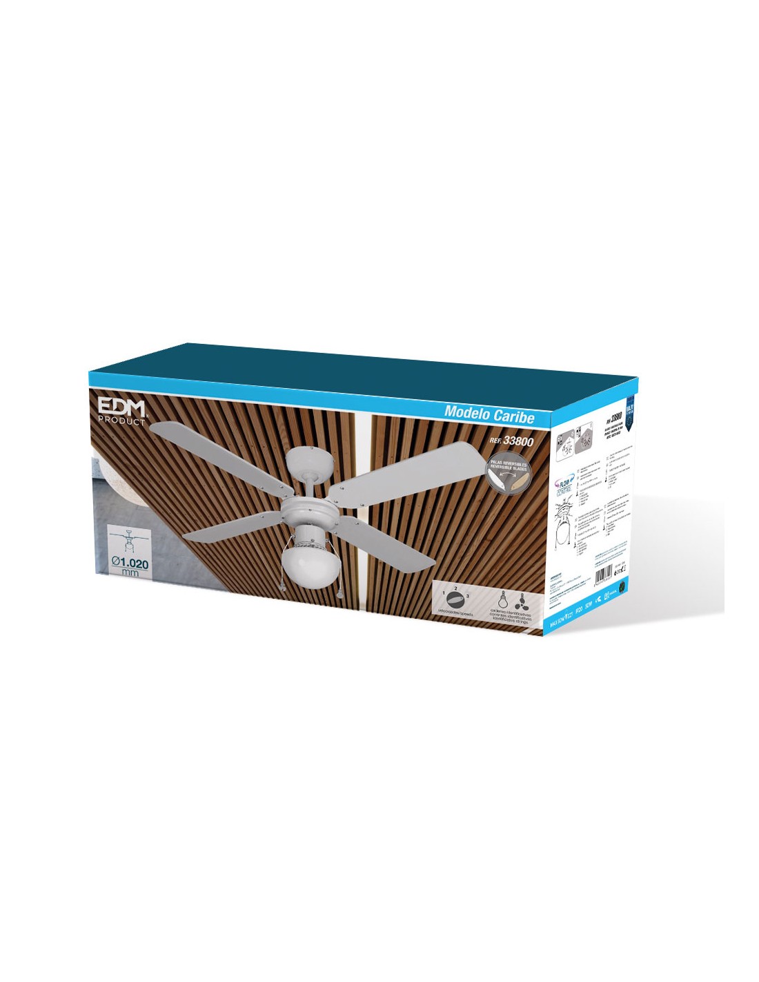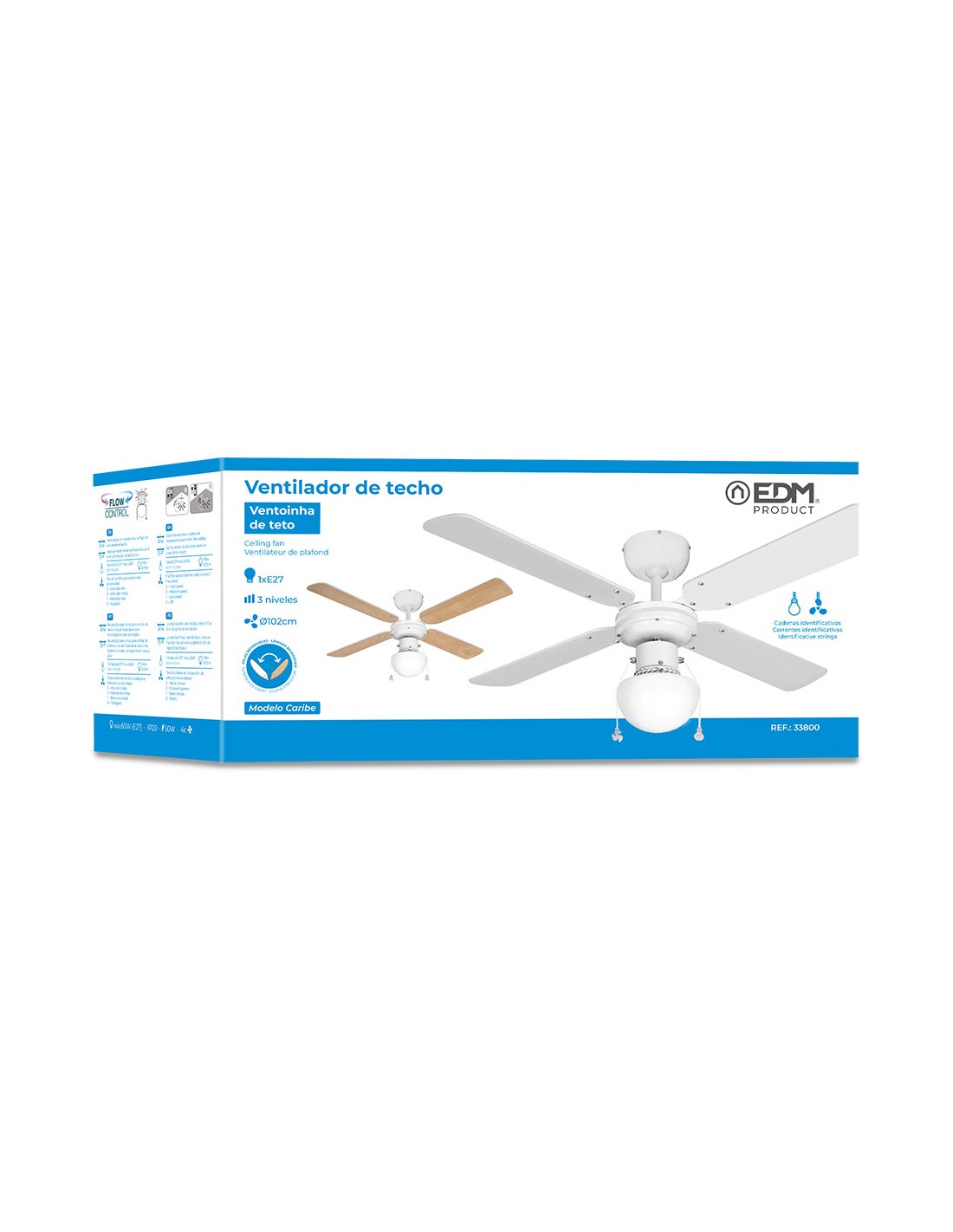 Ventilador de techo modelo caribe, color blanco, potencia: 50 w, 3 velocidades, interruptor tirador, caudal de aire 3849,6m/h, 220-240 v ~50 hz, ip20, con luz (1 x e27 máx. 60 w bombilla no incluida), 4 aspas reversibles blanco- madera de ø102 cm
