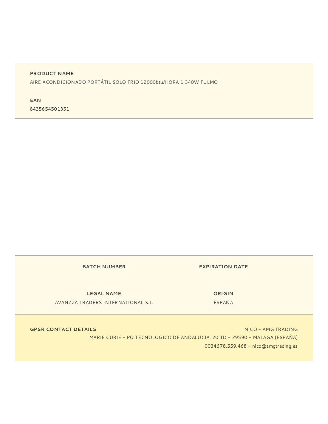 Aire acondicionado portátil solo frio 12000btu/hora 1.340w fulmo. clasificación refrigeración de entrada: 1.340w. calentamiento de entrada nominal 1.340w, para opción capacidad de enfriamiento: 3500w. volumen de aire 20-220m/h. nivel de ruido 64db, configuracion del temporizador de 24 horas. incluye función ventilador, deshumidificador, mando a distancia. peso 28.5kg. dimensiones: 37x34,5x71,5cm.