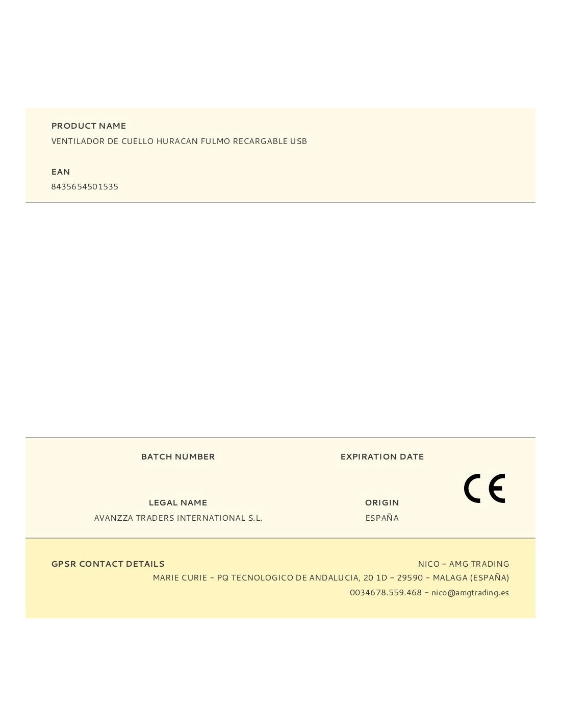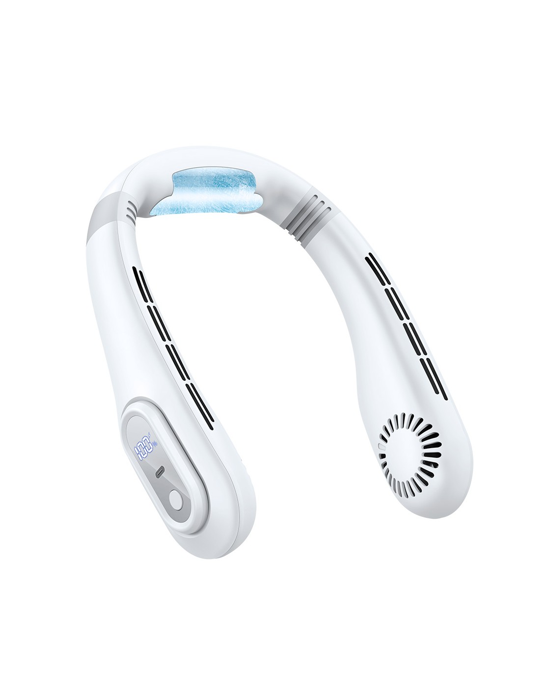 Ventilador de cuello huracan fulmo blanco. 5v 3000mah cable tipo c. tres niveles de intensidad