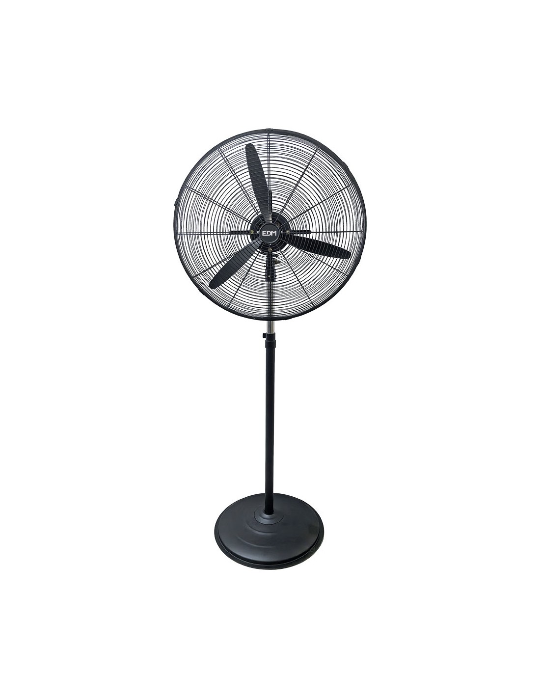 Ventilador industrial de pie, color negro. potencia 150w 3 aspas de ø60 cm altura regulable 140 - 165 cm. 3 velocidades de ventilación, rejilla de seguridad. silencioso, base redonda y antideslizante de ø50 cm. cable de alimentación 1,5 m. flujo de aire máximo 19.440 m/h. tensión 220-240 v~50hz